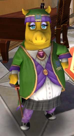 Danetta Sunscroll is a student of Pigswick Academy. She was caught by the Wizard to be using fake gold coins that she had received from the Hobgoblins in Pegasus Place.