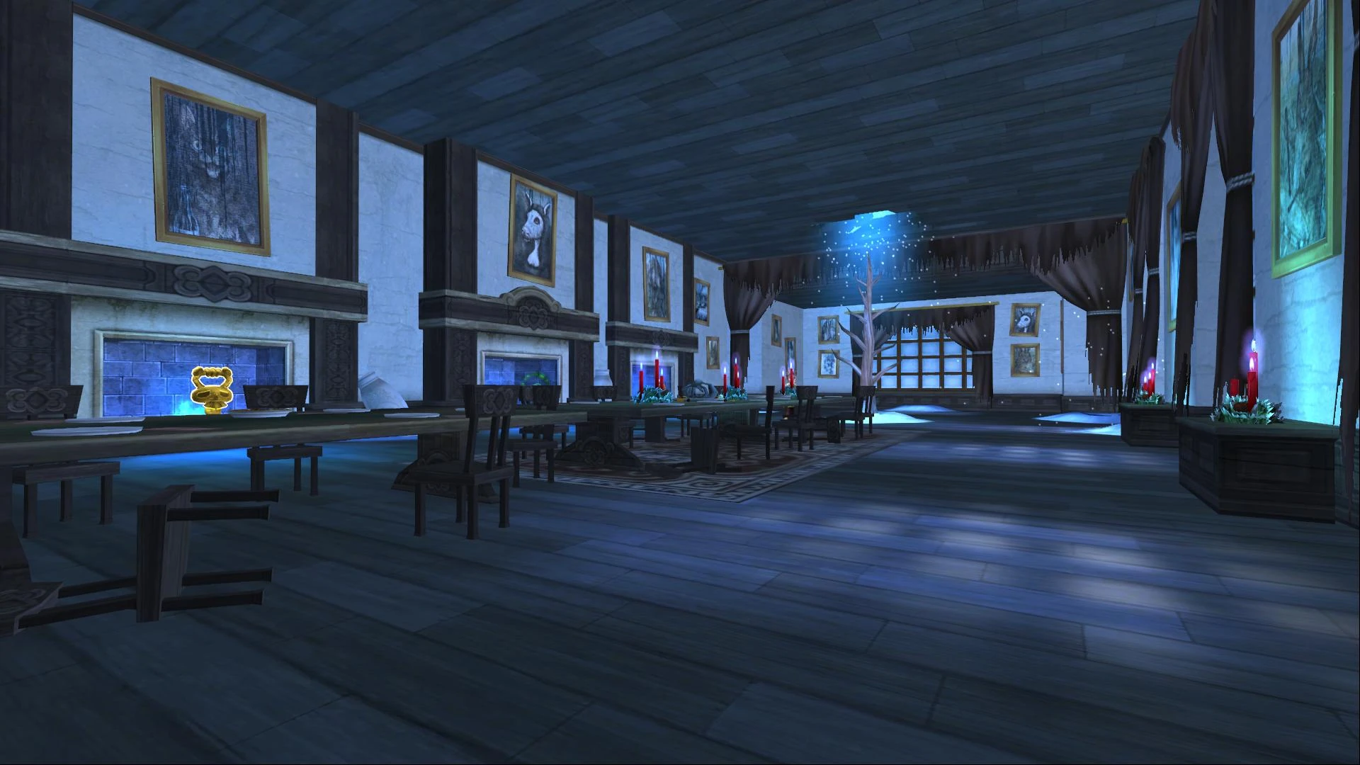 The Yuletide Feasting Hall is a building on an unknown world in the Spiral. It was the site of a proposed Yuletide Feast by Oma, which was ruined due to naughtiness. Outside of the building, in the Krampusgarten, the Wizard and the Pirate fought Krampus.[1][2]